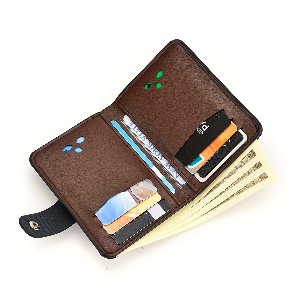 A Compact Men'S Wallet with Multiple Card Slots, Featuring a Stylish And Minimalist Design for Holding Driver'S Licenses And Credit Cards, with a Snap Closure - a Spacious Synthetic Faux Leather Coin Purse, Ideal for Travel A